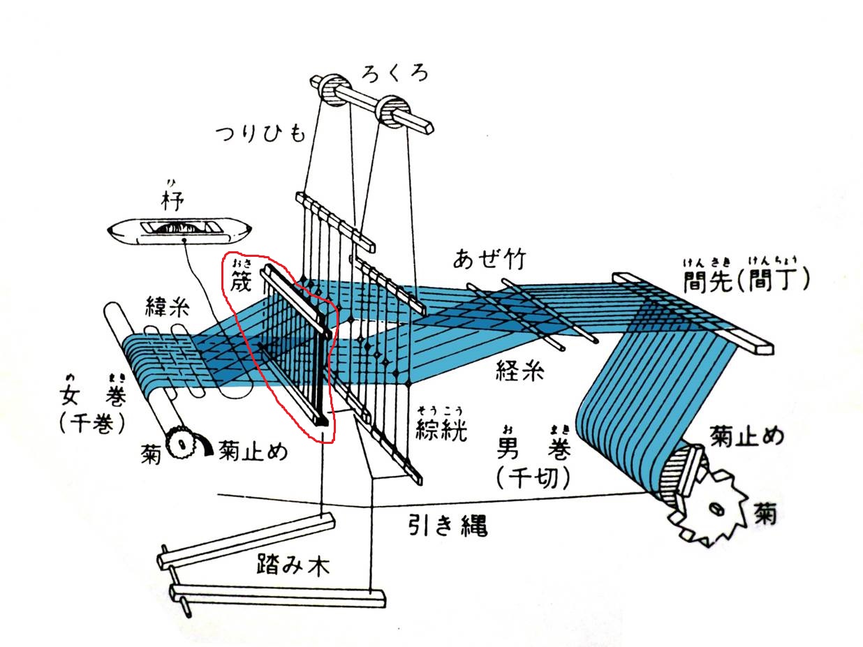 貫き投げて 筬 巡る 綾・錦織も これなるぞ 高機法の あらましぞこれ』23文